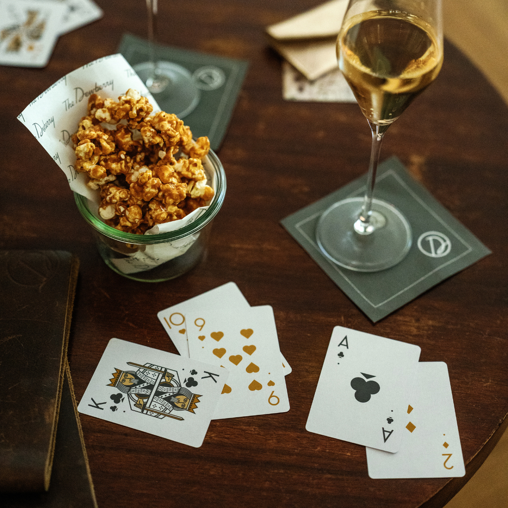 Enjoy our traditional 52-card deck, which features a unique graphic depiction of The Dewberry hotel's front façade.